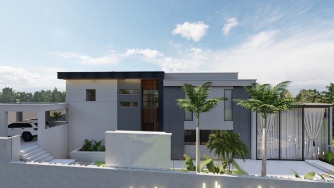 וילה עם קווים נקיים ועיצוב מודרני, הפרויקט מבטיח חווית מגורים איכותית ויוקרתית, כולל בריכת וגינה מושלמת לאירוח ולילדים.